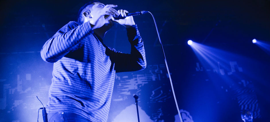 Room packed to bursting, The Twilight Sad arrived onstage to deafening applause. It was a hero’s welcome that bordered on the evangelical: disciples had travelled far and wide to see their leaders, and everybody wanted to be here and nobody wanted to leave. As strobe lights jarred against the behemoth backdrop of DLT’s cover art for “It Won/t Be Like This All The Time”, the band propelled their new record’s opening track “10 Good Reasons For Modern Drugs” forward at the writhing masses. Those who had been in attendance at shows during the previous week were quick to notice that James singing parts were in a lower register, sparking concerns that his voice may have been impacted by the recent schedule. The song didn’t suffer for it however, it’s delivery as sinister and accusatory as ever.