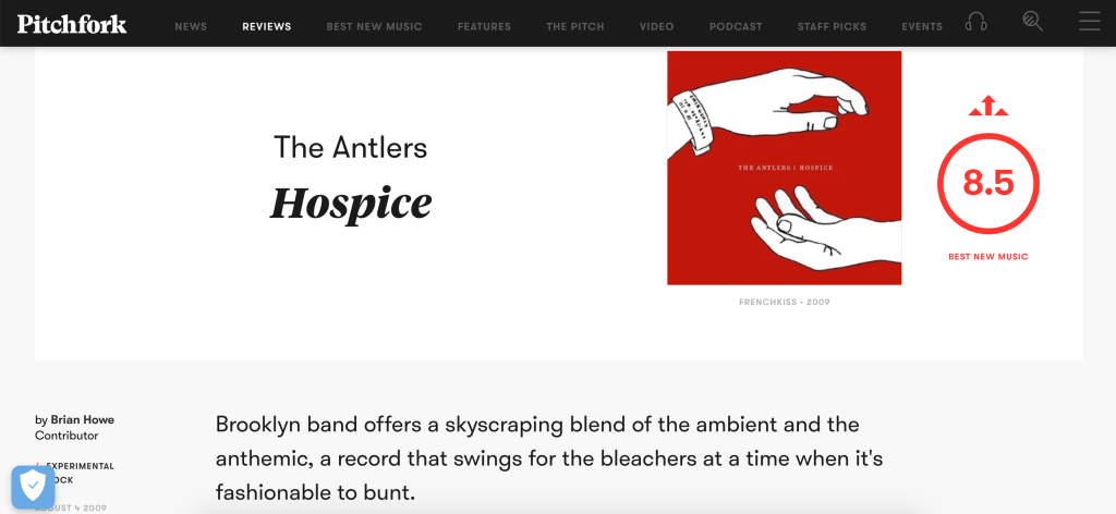 Pitchfork had plenty of pulling power. A compellingly absurd decimal point rating system for reviews (I still struggle with the difference between a 7.7/10 and a 7.8). A willingness to anoint my favourite albums as classics. The capability of dishing out cutting reviews that the big-business-owned UK press couldn’t (that Razorlight album that Q had awarded a perfect 5? Yeah? 2.8/10 mate.)